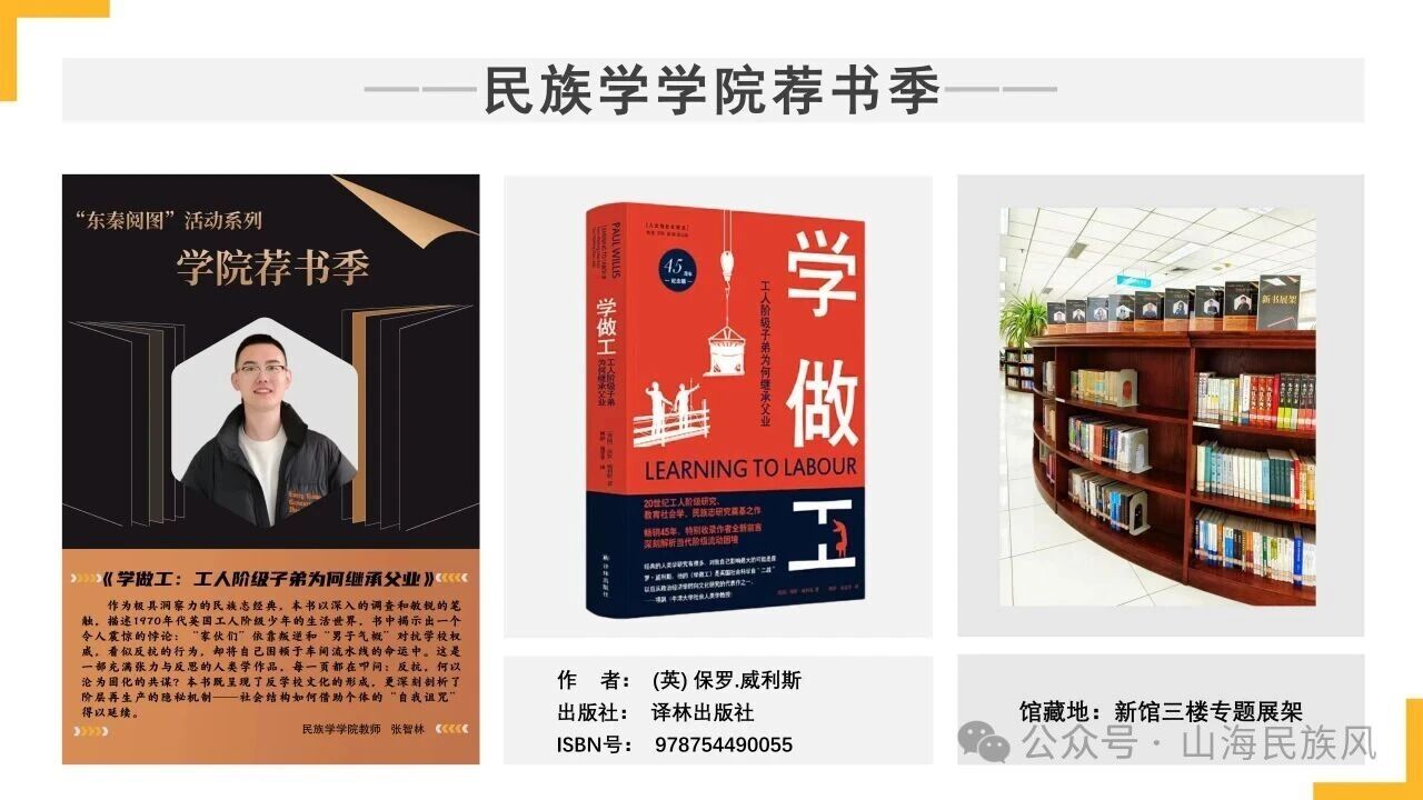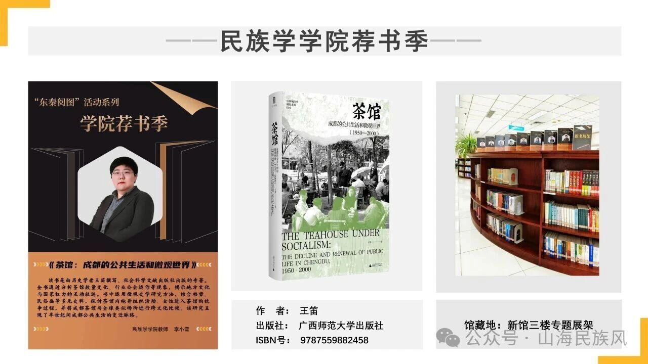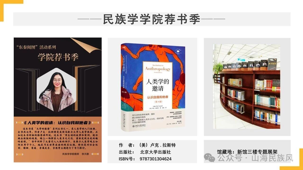 为丰富校园文化、启迪学术思考,民族学学院近日在图书馆开展荐书活动,为师生搭建专业深耕与视野拓展的“书香桥梁”。