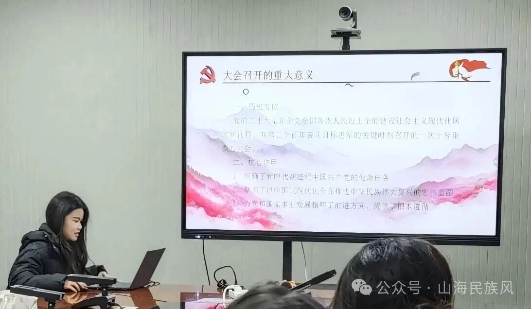 成果展示环节,学员立足专业视角,围绕党的二十大精神核心要义,以PPT汇报、主题发言等形式分享感悟。有学员结合田野调查经历,阐释“把论文写在祖国大地上”的实践初心;有学员以民族文化传承为例,畅谈青年在铸牢中华民族共同体意识中的担当。大家多维度诠释对党的使命任务的理解,现场氛围庄重热烈。