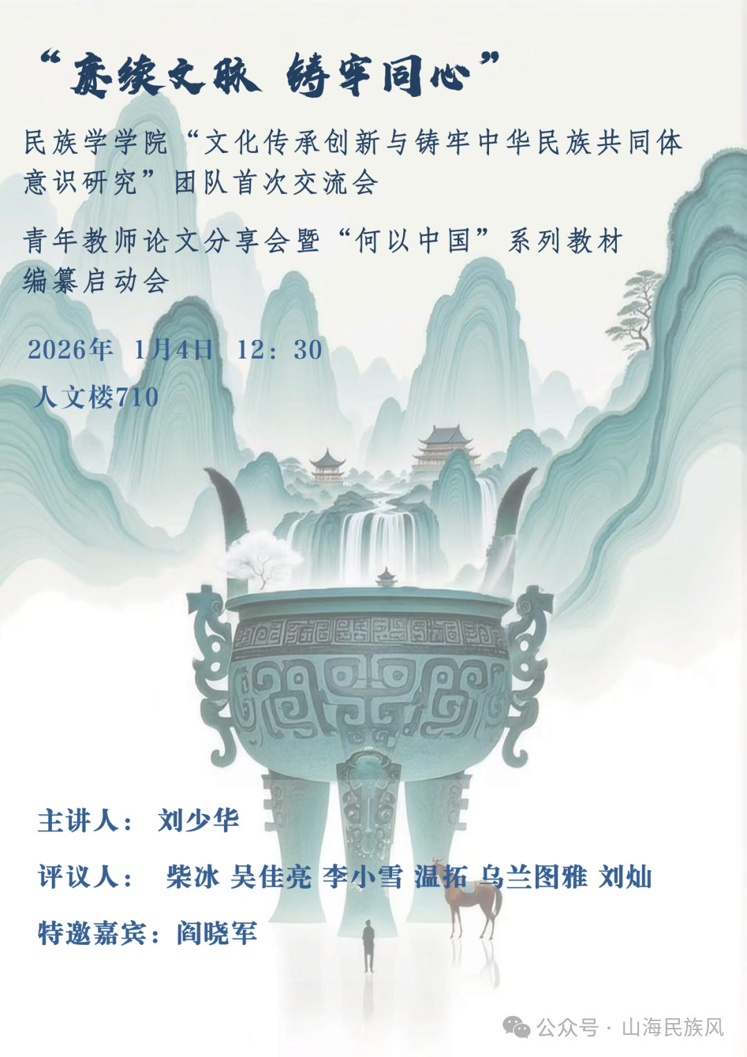 我院即将召开“文化传承创新与铸牢中华民族共同体意识研究”团体首次交流会,诚邀各位师生参加!