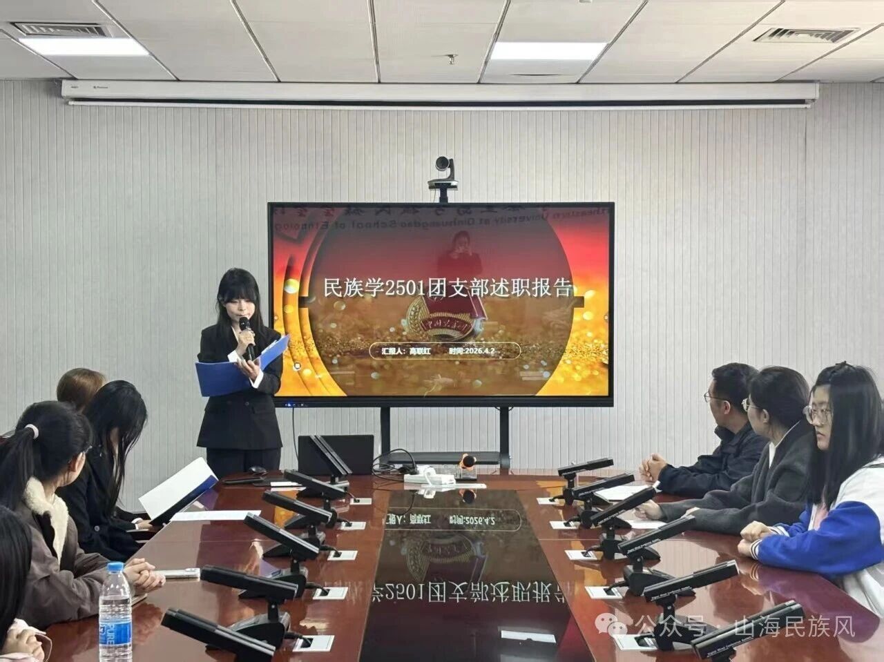 为弘扬五四精神,扎实推进基层团支部建设,增强基层团组织活力,民族学学院于4月2日在人文楼710室举行2025年度基层团支部五四述职大会。辅导员姚闯老师、校团委组织调研部成员代表、学院主要学生干部以及学生代表出席会议。